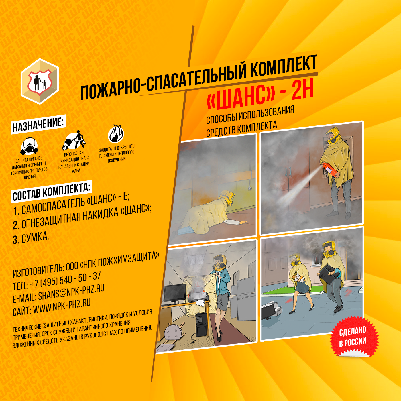 Компактно сформированный пожарно-спасательный комплект "Шанс"-2Н обеспечивает удобство хранения и позволяет комплексно и максимально эффективно использовать средства индивидуальной защиты в условиях воздействия открытого пламени и сильного задымления. Рекомендуется для объектов с массовым пребыванием людей и для высотных зданий.